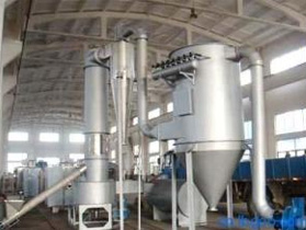流化床干燥機(jī)是由物料自進(jìn)料進(jìn)口進(jìn)入機(jī)內(nèi),在振動(dòng)力作用下,物料沿水平面流化床拋擲,向前連續(xù)運(yùn)動(dòng),熱風(fēng)向上穿過流化床同濕物料換熱后,濕空氣經(jīng)旋風(fēng)